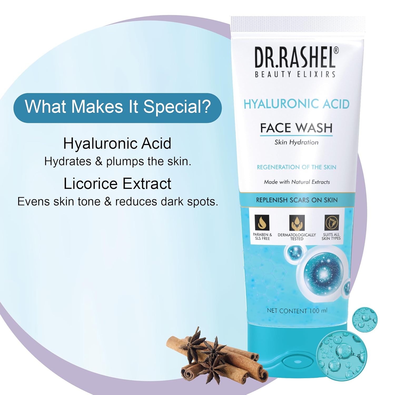 DR.RASHEL Hyaluronic Acid Face Wash For Men & Women Concentrate for Deep Cleansing & Clove Purifying Face Wash With Natural Ingredients Suitable For All Skin Oily to Normal - 100 ML