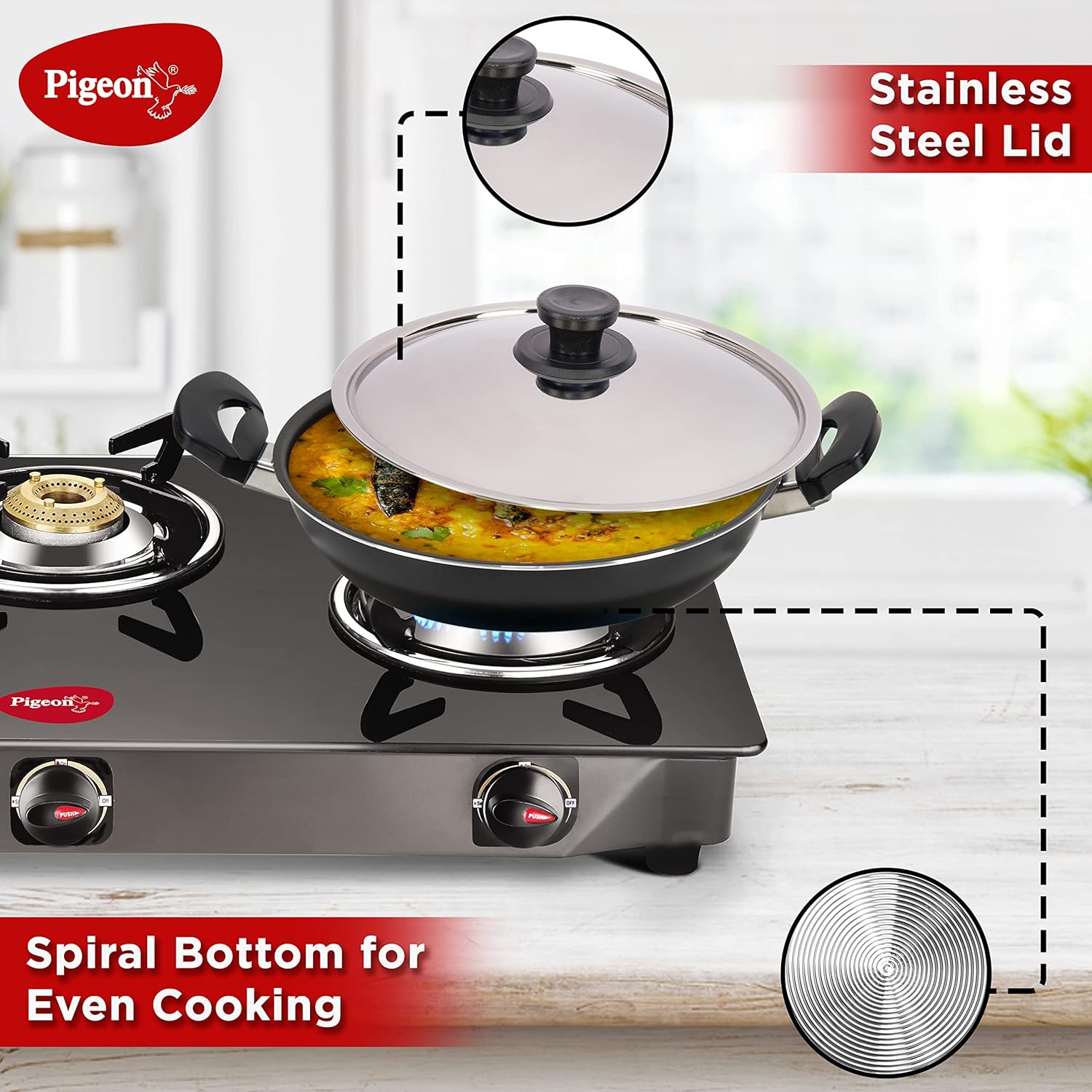 Pigeon Favourite 7 Piece Gift Set Non-Stick Coated Comes with Fry Pan, Kadhai, Lid, Sauce Pan, Spatula, Tadka Pan and a Tawa - Gas Stove Compatible (Black)